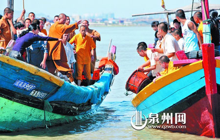 泉州少林寺方丈常定法师告诉记者,这是泉州少林寺首次组织的四众弟子海上放生活动,今后每年都将组织两次这样的放生活动。