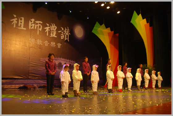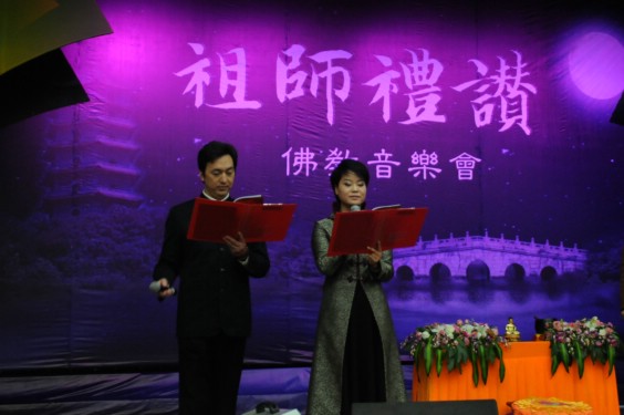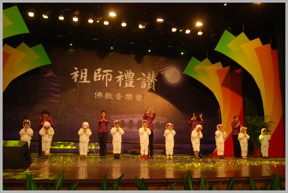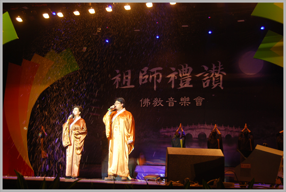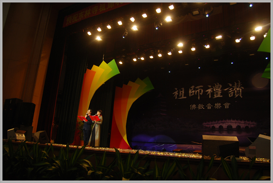 由秦皇岛佛教协会主办,昌黎水岩寺承办,庐山东林寺佛教艺术团演出的《祖师礼赞》音乐晩会于2009年11月10日下午3点,在秦皇岛工人文化宫举行。受到了一干五百名观众喜爱和欢迎。《佛音大家唱》的米米居士和邹卫居士共同主持了这台晚会。