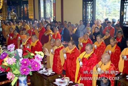 中国佛教协会副会长、四川省佛教协会会长永寿法师,四川省佛协咨议委员会主席海山法师,四川省佛教协会副会长、三昧禅林住持广成法师,四川省佛教协会副会长、什邡罗汉寺方丈素全法师,四川省佛教协会副会长、内江圣水寺方丈智海法师,德阳万佛寺方丈觉行法师,成都双流县应天寺住持佛智长老等诸山长老以及台湾凤山讲堂住持觉弘法师,国际佛光会香港协会会长陈汉斌等佛教界人士400余人参加了庆典。