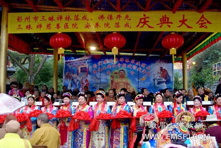 2009年11月16日上午,四川省彭州市三昧禅林灾后重建落成庆典暨佛像开光法会和三昧慈善医院揭幕剪彩仪式圆满举行。