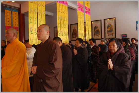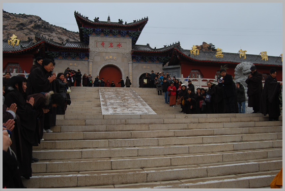 2009年11月7日-9日,秦皇岛市佛教协会隆重举办“第四届正觉之音佛学讲座”,大安法师应邀主讲《西方确指》,近千人随喜听闻。11月10日上午,大安法师应邀前往昌黎水岩寺为大众传授三皈五戒。初冬的秦皇岛,飘起了小雪,这几天气温起伏不定,温差在10度以上。由于水岩寺位处市郊,居士们为了能够赶来参加这一次的法会,很早就来到了寺院。秦皇岛的居士们包了五辆大巴,近200人前往昌黎水岩寺参加法会。