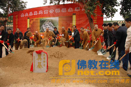 庆典活动在奠基培土中掀起高潮,各位嘉宾领导、诸山长老、大德法师以及与会人士分批为永福寺重修扩建奠基培土,共同祈愿永福寺重修护建工程早日完成。