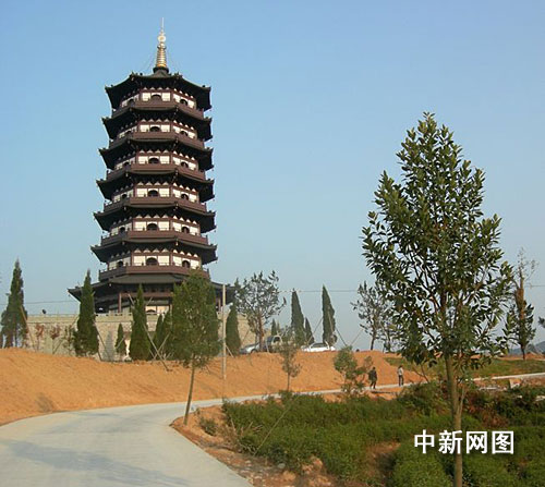 记者今天在现场看到,新建的华严塔为八角仿宋塔,仿木结构,钢筋混泥土塔身,塔身为7层,附架下1层,共8层,建筑面积2578平方米,塔身高63.91米,塔刹高12.24米,塔基宽32米,塔身由塔心、外壁、回廊三部分组成,内设一部电梯和楼梯,整体建筑雄伟大气、蔚为壮观。