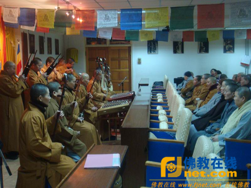 妙贤法师陪同耀一法师一行参观了寺院各殿堂,并共同观看了佛乐表演,耀一法师还即兴歌唱了一首《日日观音》。
