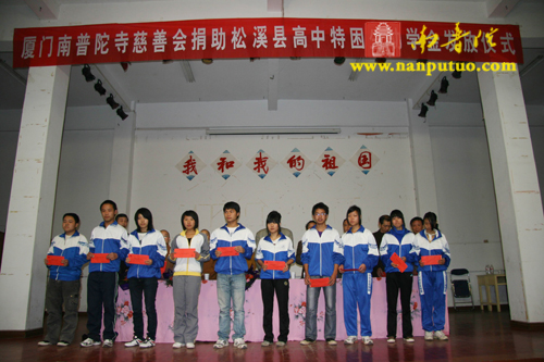 厦门南普陀寺慈善会捐助松溪县贫困高中生(图)