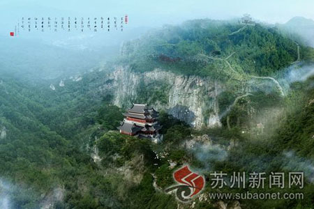 文殊寺始建于东晋年间,为东晋高僧支遁创建,距今已有1600多年,是苏州西部的古寺之一。文殊寺地处阳山最高峰箭阙峰东北侧文殊岩下,地势险峻,建筑凌空,又被后人誉为天狗庙、悬空寺。上世纪五六十年代被毁。浴日亭建于明代,是当时箭阙峰上观看日月同升天象奇观的重要观赏点,近代毁于战乱。(文:陈俊夷 戴燕)
