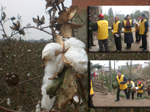 下船后,满眼的棉花地。点点棉蕾挂在田间棉枝上,汇成一片白色柔软温暖。周会炎等三位师兄早已等候在路边,准备给我们带路。主管居家关怀的王战敏师兄对照名单,开始一家家走访,送棉被递温暖。