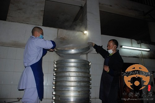 为保证禅七的正常进行,南华禅寺全面保障禅七法会物资供应。在禅七起七仪式开始的同时,在斋堂里,佛学院师父和义工们正热火朝天地为禅七师父准备包子。相信在大家的护持下,此次禅七法会一定会圆满完成。