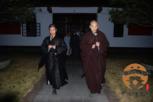 傍晚5时45分,禅堂监香法师打板启示,禅七起七仪式准备开始。 众法师纷纷进入禅堂静坐,等候起七仪式开始。维那师果万法师宣读禅七监香法师名单并移交监板,监香法师于佛台前行顶礼磕拜,随后众师父恭候在佛台两边迎请主法法师。与此同时,香灯法师恭请主法法师南华禅寺传开老和尚。传开老和尚在照贤法师扶持下进入禅堂,手执监板,在传开老和尚一声“起”后,众法师绕佛台跑香起念。最后,众法师安坐于位正式开始坐香。南华禅寺禅七法会正式拉开。
