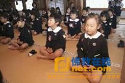 他们坐在佛堂的榻榻米上,用默数数字的方法让心情平静下来,在严肃的气氛中修习坐禅。竹林幸祥副园长说,坐禅修行有利于儿童成长。在佛祖面前唱颂般若心经,孩子们表现地比往常更加用心和努力。6岁的上山莉子小朋友表示,虽然在寺院坐禅比较紧张,但是感觉很好。(编译:杨俏峰)