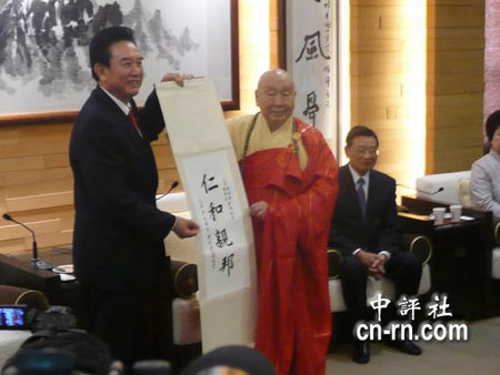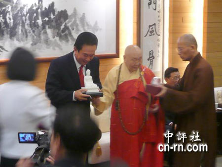 12月24日,海协会会长陈云林参访台湾宗教圣地南投“中台禅寺”,惟觉大和尚以5大礼品相赠,为两岸宗教文化交流奠定良好基础。