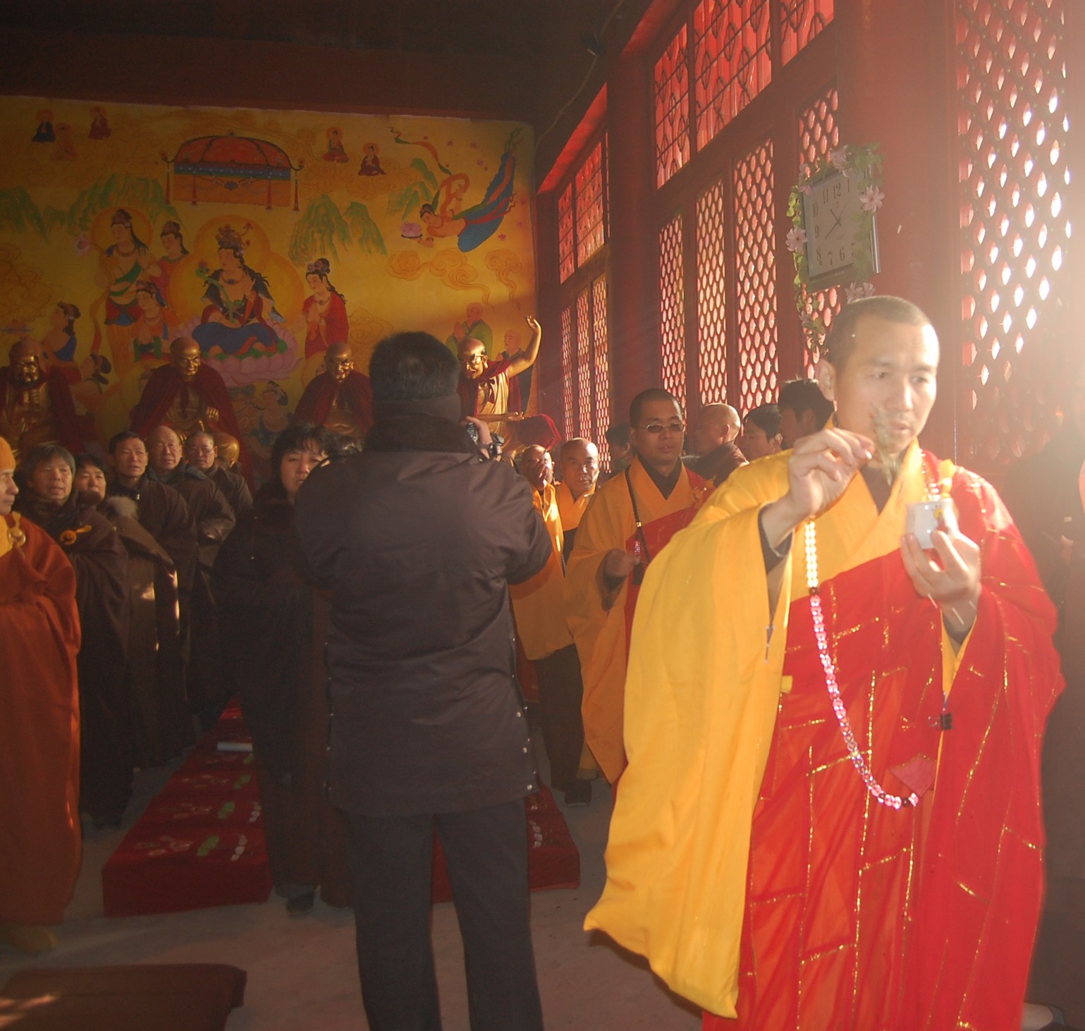 阿弥陀佛!冬至时分,今日寒气逼人,却有佛光注照。此时,四众佛子齐集德泉寺中,以欢喜的心参加大雄宝殿暨佛像开光大典法会。在这里,请允许我代表河北省佛教协会、代表弘一佛堂两序大众对德泉寺大雄宝殿暨佛像开光大典致以热烈地祝贺!隆发长老暨寺中僧俗大众生活俭朴,苦行修道,我等敬意无量!