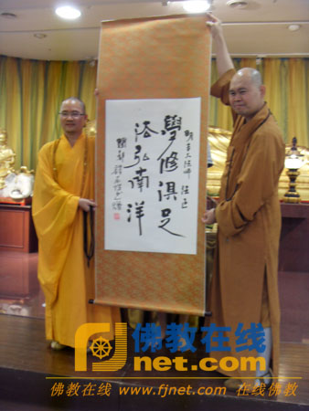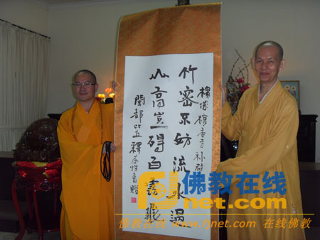 本性法师与马来西亚佛教总会副主席明吉法师互赠礼品