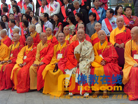 参加槟城极乐寺观音八角亭落成法会的诸山长老、领导以及居士