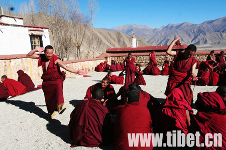 冬季大法会是通过辩经的形式了解各寺院僧人学经程度、管理等综合素质。辩经主要分为集体答辩与个人答辩两种。为“格西然巴”学位做准备。也是通过辩经的形式提高各寺院佛学学习等程度。