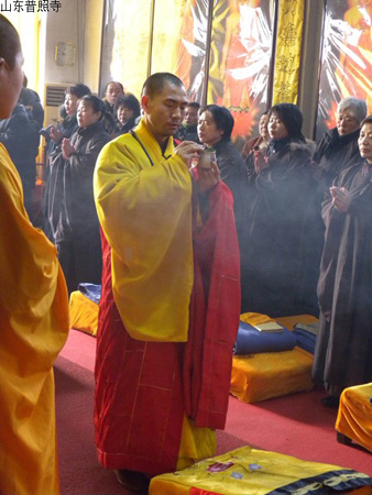 2010年1月15日(农历腊月初一),山东省淄博市普照寺冬季精进佛七如期举行,普照寺住持仁昌法师主法洒净。