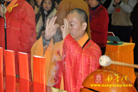 2010年1月22日,福建省厦门市南普陀寺“消灾延寿万佛法会”正式开始,举行熏坛洒净仪式。仪式由南普陀寺首座了法法师主法,两序大众如法如律地诚诵礼忏。