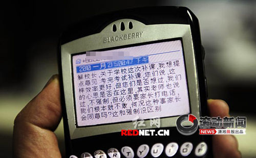 21日下午,益阳市6中解校长向记者展示学生发过来的关于反对补课的信息。记者赵尚渝