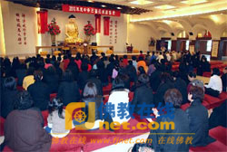 佛光山台中区总住持觉居法师首先为参会信众讲解“人间佛教的建设”,他表示:“真正的人间佛教是现实重于玄谈、大众重于个人、社会重于山林、利他重于自利,是希望用佛陀的开示教化,作为改善我们人生的准绳,用佛法来净化我们的思想,让佛法作为我们生活的依据,使我们过得更有意义,更有价值。”而人间佛教真正要建设的是“生活乐趣”、“财富丰足”、“慈悲道德”、“眷属和敬”的人间净土。