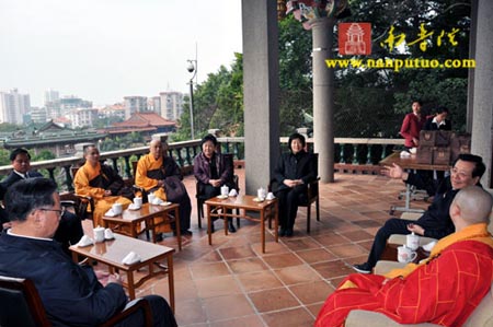 随后,则悟法师与曾庆红一行在藏经阁的平台上举行座谈。则悟法师为来宾介绍了南普陀寺、闽南佛学院及慈善会近年来运作的情况,并表达了对党和政府的宗教政策和各级领导关心与支持的感谢之情。曾庆红在交流中,充分肯定了佛教在维护国家稳定、促进和谐社会方面的重要作用,并对佛教界的诸多善行善举称赞有加。(消息来源:南普陀寺 编辑:土登)