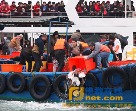 厦门念佛莲友举行海上大放生活动(图)
