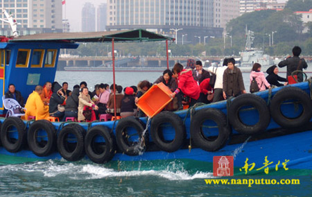 2010年1月27日下午2时,福建省厦门市觉性院组织常住僧众及广大护法居士在厦门第一码头举行了年终海上放生活动,觉性院住持德煌法师为放生仪式主法,众人怀着悲愍之心,虔诚念诵经咒,伴着声声佛号,被放水族众生重新回归大海。