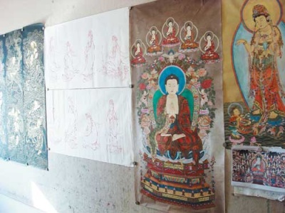 没过几天,刘姓画商马上又来了,告诉刘章崐,济南的朋友说他画的像都非常好。云南有一个大寺院,可能在大理。那儿的老百姓都信佛,来寺院的香客都请佛像,有的是有偿的,有的是无偿的,弄得挺好。济南这个朋友认识寺院的住持,他们需要的量很大,托他请刘章崐再画一百罗汉,宽一些的。
