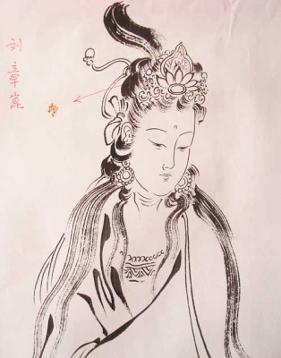 过了一些日子,刘姓画商又请他再画些观音像。这正是刘章崐先生所盼望的。所以后来刘章崐先生画的朱砂观音像几乎都打了暗款儿。画完这些,刘姓画商就都拿走了,这时差不多是2005年前后了……