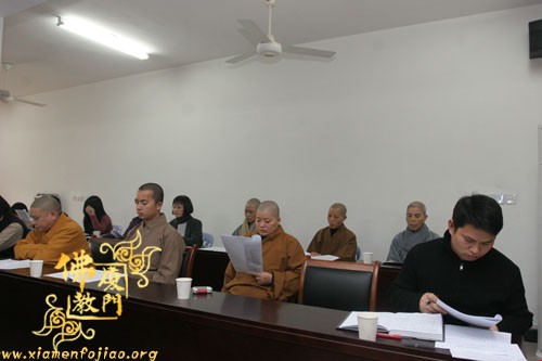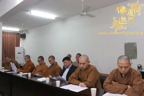今天下午2时30分,在慈善会二楼会议室,民族宗教事务局蔡永华副局长,一处黄振辉处长,厦门佛教协会会长则悟大和尚,常务副会长定恒法师,副会长戒相法师、法云法师、法源法师、开敏法师、