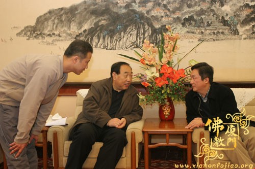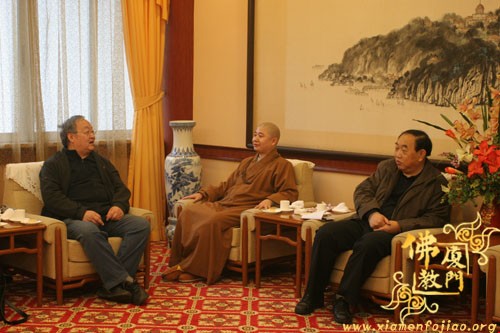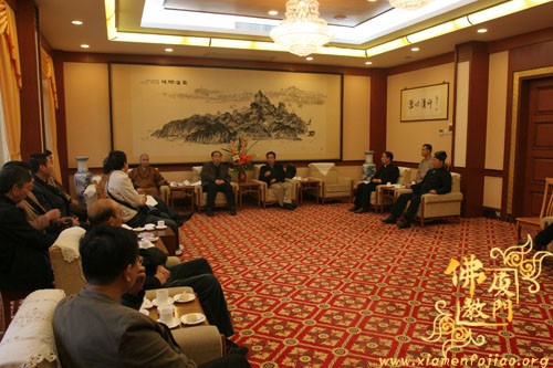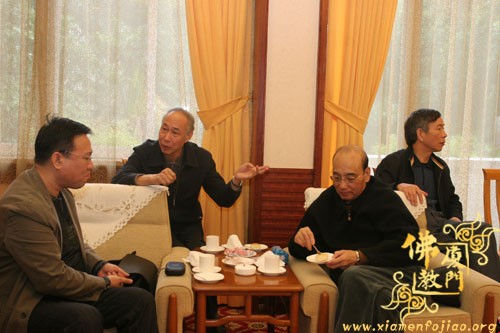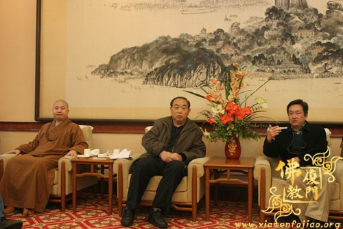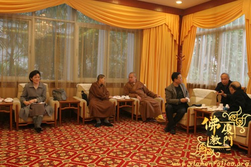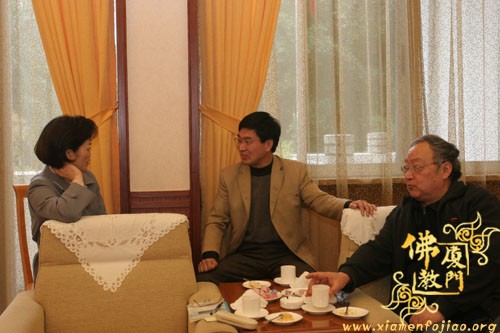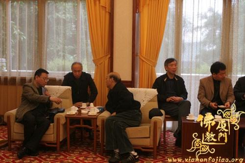 双方畅谈中,蔡永华副局长首先向来宾全面介绍了厦门的佛教沿革,并且以幽默的风格带来阵阵笑声;随后,来访的西安市委统战部常焕良副部长也做了精彩讲话,谈了来厦门的感想,以及回去之后可以从中学习借鉴的经验,同时也介绍了西安的佛教历史和现在的发展……宾主进行了广泛交流,仍感意犹未尽。