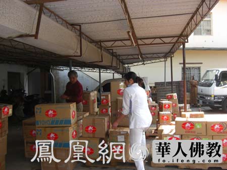 佛光山全山僧信、大慈育幼院院童也迅速投入到整理救灾物资的工作中,他们有的帮忙清点物资数量,有的则将物资装箱。这些救灾物资已经于17日送至桃源机场,18日将用救灾专机运抵海地。