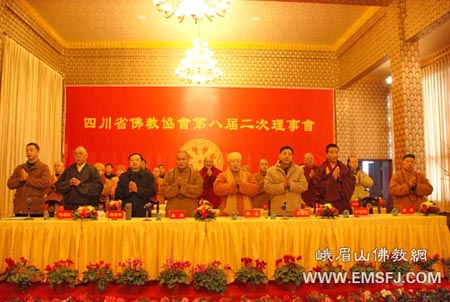 2010年1月1日,四川省佛教协会第八届二次理事会在峨眉山大佛禅院五观堂隆重举行。四川省佛教协会会长、副会长、咨议委员会主席、副主席以及全体理事参加了会议。省委统战部副部长、省宗教局局长王增建、副局长杨伯明以及省宗教局有关处室负责人应邀出席了此次会议。会议由四川省佛协秘书长王立军主持。