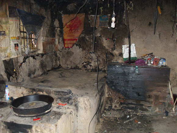 据当地村民介绍,曾经有两个流浪汉在此地住过,后来这个山被承包出去,有可能要搞旅游开发。洞一旁是小茅蓬,底下是废弃的灶头,一旁是石块砌好的土屋,好像正在建设中。