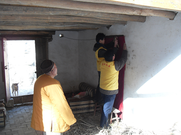 到高冠瀑布一辆车进去送粮后,很快,车队到了户县太平森林保护区的大定寺。山上的师傅早早下来,在马路旁等候。我们把供僧的物品分配好后,师傅带领着我们,来到附近的师傅处。