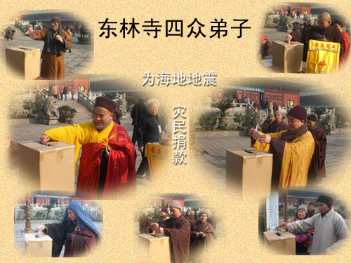 2010年1月12日当地时间下午4点,海地发生了立国二百年来最剧烈的罕见7.3级的大地震,造成了近数十万人的伤亡,近300万人受灾。 无数的人们失去亲人悲痛欲绝,无数的人饥饿难忍急需食品,无数的人们无家可归等待重建,这一切都急需要国际各界的大力援助。 任何一次灾难,给人类带来的苦痛是深重的。也许在海地发生地震之前,很多人不知道它的存在。但是在地球的大家园中,我们共同承受着生命的疼痛。他们和我们一样都有着生活的热望与梦想,他们和我们一样,对生命有着共同的尊重。我们超越时空阻隔,宛如在场,感同身受,那惨不忍睹的地震现场触动我们心底最敏感最柔软的部分。 东林慈善功德会面对此灾难,郑重倡导全体佛教信众、各界爱心人士、全体志愿者本着“无缘大慈、同体大悲”的精神,不分地域,不分国界,不分种族,不分信仰,伸出援助之手,奉献仁慈之心,节省一分钱,一毛钱,一元钱。。。。。。以涓滴汇海之势,用我们的绵薄之力帮他们度过难关,或许我们微小的贡献不足以救活一个人,但是我们凝聚在一起的力量,却是断壁残垣中坚实的温暖。 2010年元月17日上午,东林寺为海地地震灾区举行了祈福超度法会,东林慈善功德会为此举行了募捐。 冀诸各界社会善心人士发大悲心,随缘布施,所有款项东林慈善功德会将通过中国红十字会转交给灾区人民,截止时间为1月31日。 让我们以最大的悲悯为海地祈福!祈愿海地地震灾区,生者远离灾难苦厄,死者免堕得生净土! 南无阿弥陀佛!