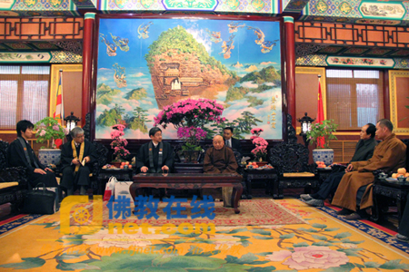 中国佛教协会副秘书长、教务部主任宗家顺,普正法师,中佛协教务部副主任清远法师,中佛协综合研究室副主任宏度法师,能真法师,性然法师等参加了会见。普正法师主持,中佛协国际部日本客客长李贺敏担任翻译。
