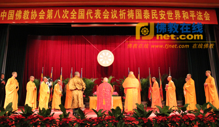 2010年2月1日8点整,在中国佛教协会第八次代表会议开幕式开始前,“祈祷国泰民安世界和平法会”在北京友谊宾馆友谊宫二楼聚英厅隆重举行,由传印长老、嘉木样仁波切、祜巴龙庄勐长老共同主法。