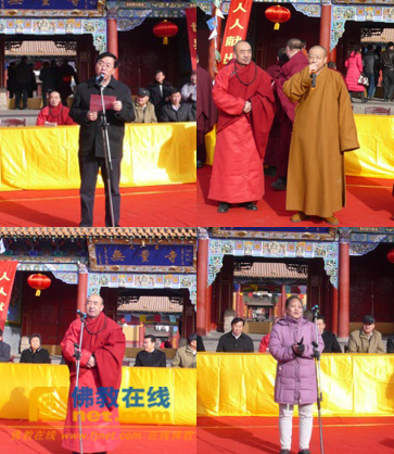 上排左图:格尔图区长讲话,右图:澄还法师(右)讲话
