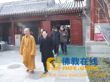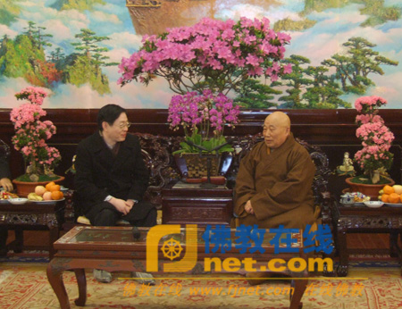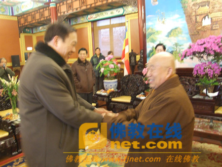 2010年2月10日上午,在新春佳节即将来临之际,国家宗教事务局王作安局长、齐晓飞副局长、蒋坚永副局长一行前往中国佛教协会,看望并慰问中国佛教协会会长传印长老、副会长学诚法师等中佛协工作人员,双方并进行了亲切的交流。