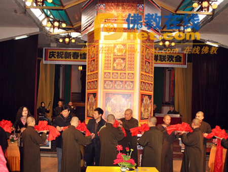 法会在优雅的梵音中进行,陕西终南山中言法师、张凤海局长、钟晓东主任、妙圆法师、瑞光法师、邹宏主任分别在法会期间讲话,并向广大信众传递了新年的祝福。