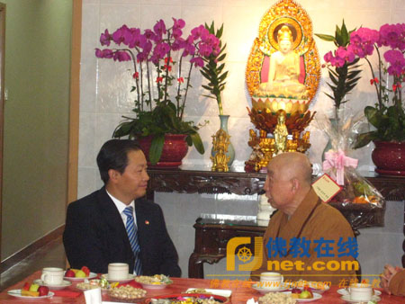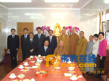 2010年2月24日,中联办主任彭清华、协调部部长沈冲等一行到香港佛教联合会看望港佛联会长觉光长老并向觉光长老及港佛联众法师致以新春的问候。