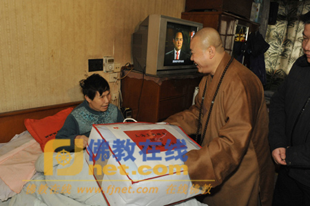 觉醒法师一行来到了一些特困家庭。其中有的家庭成员几人患有严重的疾病和残疾;有的是社会孤老;还有的本人身患重疾又有子女在求学,生活压力非常大。玉佛寺不仅给这些困难家庭带去了慰问金,还带去了越冬的棉被和玉佛寺素斋部的大礼盒,让大家能感受“美好的城市,美好的生活”,过一个祥和快乐的春节。