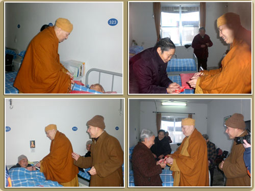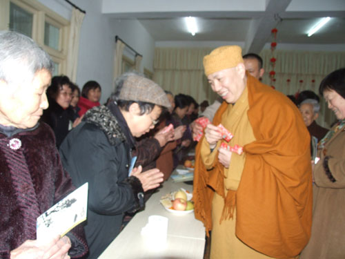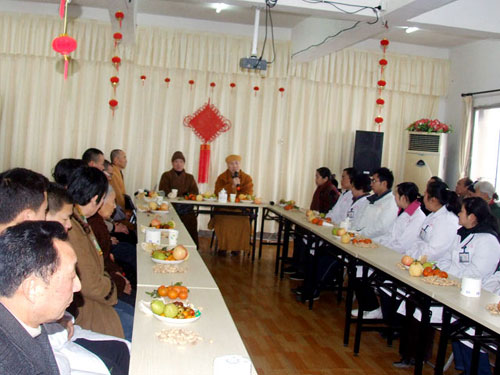 2010年2月8日,农历腊月二十五,东林慈善功德会所有工作人员以及九江的志愿者举行了春节茶话会。大安法师来到了东林慈善功德会总部看望大家。 大安法师首先到三楼的安养院,看望了安养院的老人并给向老人提前拜年,勉励老人要以苦为师,做念佛往生的楷模。 茶话会上,镜义法师首先对2009年功德会的工作做了总结。东林慈善功德会在广大爱心人士和志愿者的支持下,展开慈善医疗、扶贫救济、居家关怀、助学、赈灾、环保、教育等各项慈善活动,09年各项慈善项目资金总支出达到360万元。 门诊部还定期每月到各县乡镇敬老院开展义诊施药活动,09年已在九江附近义诊12次,免费义诊施药11664.5元,解决了许多困难群众以及敬老院老人看病难问题,在社会上取得了很好的反响。09年有15名大病患者获得了东林慈善的救助,帮助不少绝望的患者渡过了难关。 居家关怀走访了300多户,节假日关怀近300户,长期关怀 50多户,资合计助金额189,995.00元。 今年7月,江西省赣南遭遇特大洪水灾害,大余等几个县的许多灾民房屋倒塌,东林慈善及时为318户灾民们送去价值37366元粮油,并为16 户贫困的倒塌房屋户援建爱心屋,合计金额39.2万元。赈灾克难合计总金额53万余元。 截止09年12月,今年的总助学扶教资金达到100万元。 2009年我们举办了4次全国性的志愿者培训,志愿者从全国各地来到东林寺亲自感受东林道风、东林佛号以及东林慈善理念。 镜义法师还讲:尊敬的大安法师视察功德会是大家非常向往的事情。大安法师百忙中抽出空,满足了大家的要求。在大家努力下,功德会稳步向前发展。我代表功德会所有成员向大安法师表示感谢!代表功德会所有成员向东林寺常住表示感谢! 接着,大安法师做了重要开示:功德会两年来确实取得了很大的成绩。镜义法师刚才概括的讲了一些,实际做的要更多,功德会得到了社会各界的一致好评,我们听了真是欢喜赞叹。这都是志愿者和工作人员大力参与辛勤工作的结果。这也是佛教界应该做的。每个人在现代都是恐惧不安,有很多人都是“叫天天不应,叫地地不灵”。 一切在这个娑婆世界里都是苦难的。没有安乐,一切安乐只有从佛那里获得。把慈悲的温暖的送到最需要的地方去,把眼光看到下边的贫苦大众,先物质救援,再以佛法滋润,最后送到西方极乐。这一块儿非常有市场,居士也迫切响应。作为本人和东林寺常住都会对此重视,支持功德会长远发展,帮助苦难众生。 我们安养院虽然很整洁,但是每个房间住的人多,两个人一个房间最好。要人性化,让老人更有尊严,要有特殊护理的地方。希望大家发大心,把功德会、安养院做大,是我们的工作目标,门诊部也要继续发展。一方面做好宣传工作,一方面要和功德主保持长期联系。功德会一切项目要公开透明,要有健全的管理,树立良好的形象,把公信力摆在最顶上。让大家投钱来功德会比较放心。有多大的心量,就能做多大的事情。新的一年,东林寺各项工作都将要蓬勃开展。 最后大安法师给大家一一分发了东林寺贺年卡及念佛计数器并祝福大家新年吉祥!万事如意! 在座志愿者纷纷感言,都表示在新的一年里,一如既往地以大乘佛教慈悲济世的精神理念为宗旨,以“不为自己求安乐,但愿众生得离苦” 为行愿,做功德会优秀的志愿者,以“东林慈善功德会志愿者”这个称号为荣,在功德会这个大家庭里,共同修行,完善自己。 诙谐幽默的照正法师给大家开示了做慈善得法喜的道理。 镜义法师做了结束语:非常感恩大家来聚会,慈善功德会的发展要与东林寺的发展相应。东林寺将要成为世界性、规范性的丛林,这是东林寺的使命和契机。东林慈善也要向世界性的慈善组织发展,希望大家也加强修养,提高素质,为佛教的慈善事业尽心竭力。 2010年春节茶话会在一片欢笑声中圆满结束。 南无阿弥陀佛! 南无阿弥陀佛! 南无阿弥陀佛!