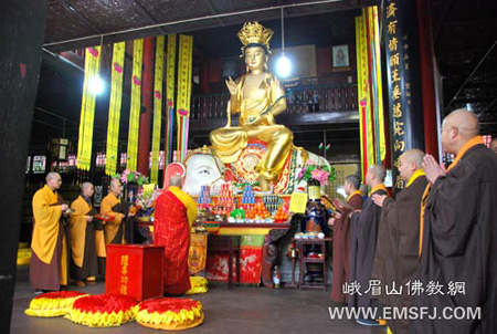 2010年2月11日至12日,新春佳节前夕,峨眉山各大寺院纷纷隆重举行普同供养法会,于诸佛菩萨座前上香设供,虔诚祈愿国运昌隆,风调雨顺;人民幸福安康,社会和谐进步!