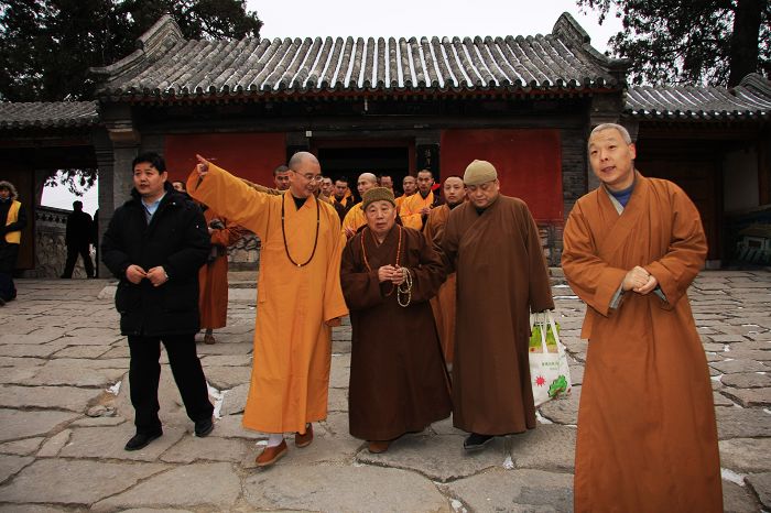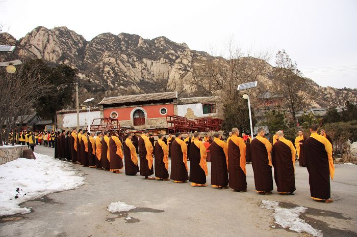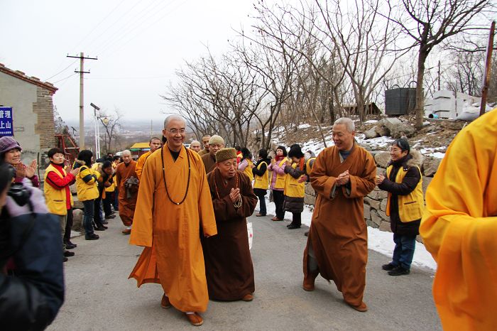 2月10日下午,中国佛教协会会长传印长老、秘书长王健先生等一行,来到北京龙泉寺慰问。龙泉寺僧俗二众,在山门前排班接驾。