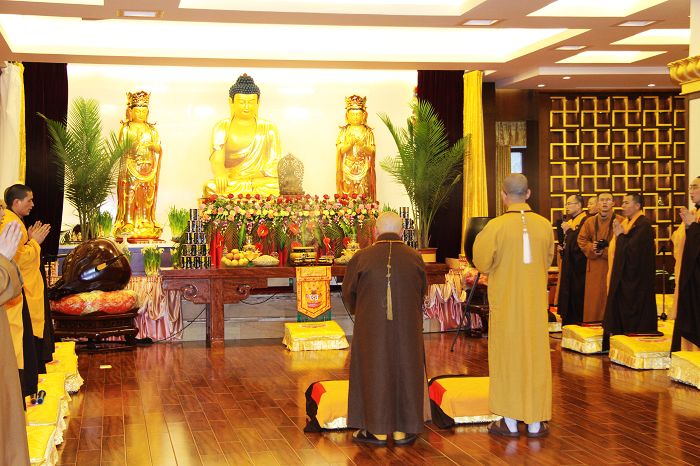 在见行堂,罄声梵呗,两序大众以佛教特有的礼节,恭迎长老。仪轨结束,传老做了开示:“非常高兴与大家见面,这是意想不到的,大众在寒风中到山门外去迎接我,我很感动,同时觉得承受不起。我五年前来过这里,后来又来过一次,如今到这里一看,这里的一切与从前大不一样了,增加了很多设施,上次来还都没有。我看到这里变成了一个清净的道场,比丘、沙弥、两序大众如法如理,可以说,龙泉寺在我们京城里是第一大丛林了。