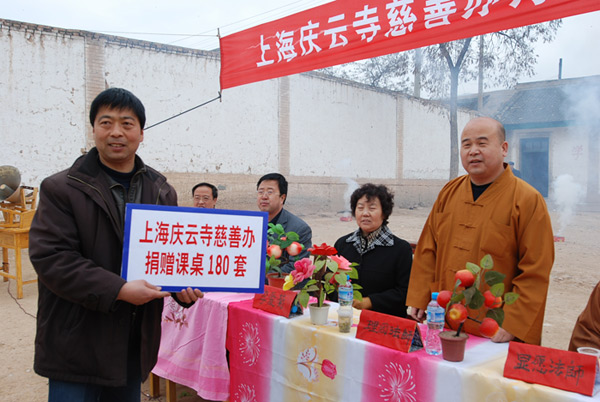 上海庆云寺慈善办为贫困小学捐赠课桌凳