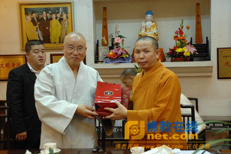 最后,宾主双方互赠纪念礼品并在大殿前合影留念。