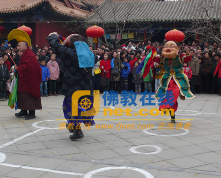 赵九九法师带领四众弟子于迈达佛前诵经祈祷,围观信众纷纷向大佛敬献哈达、钱物,虔诚的顶礼膜拜。“跳恰木”时,只见僧众们换上特定的服装,带上面具,装扮成各种神明的样子,在佛乐的伴奏下起舞,舞蹈奇特,神秘莫测。(本站通讯员 子铃 现场报道 编辑:常慧)