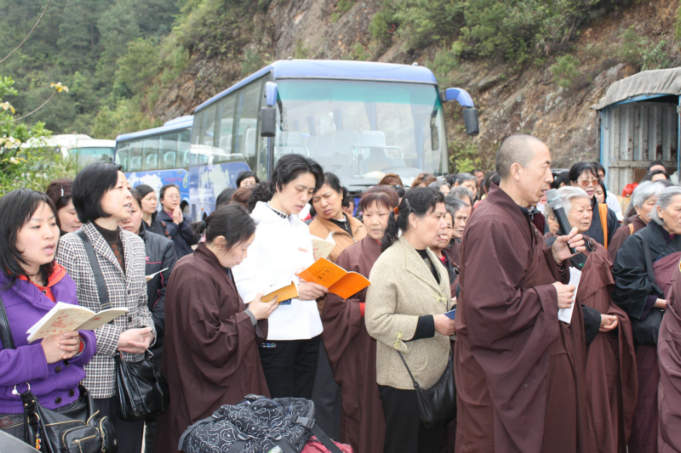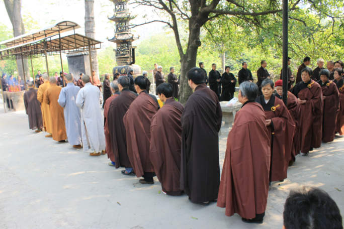 桂林市的居士们很虔诚,除了联系组织放生外,他们还组织安排请师父开示、领众念佛。27日上午,应居士之请,东林寺心开师在祝圣寺念佛堂做随缘开示。下午,带领居士学念东林佛号,参加居士有五十多位。